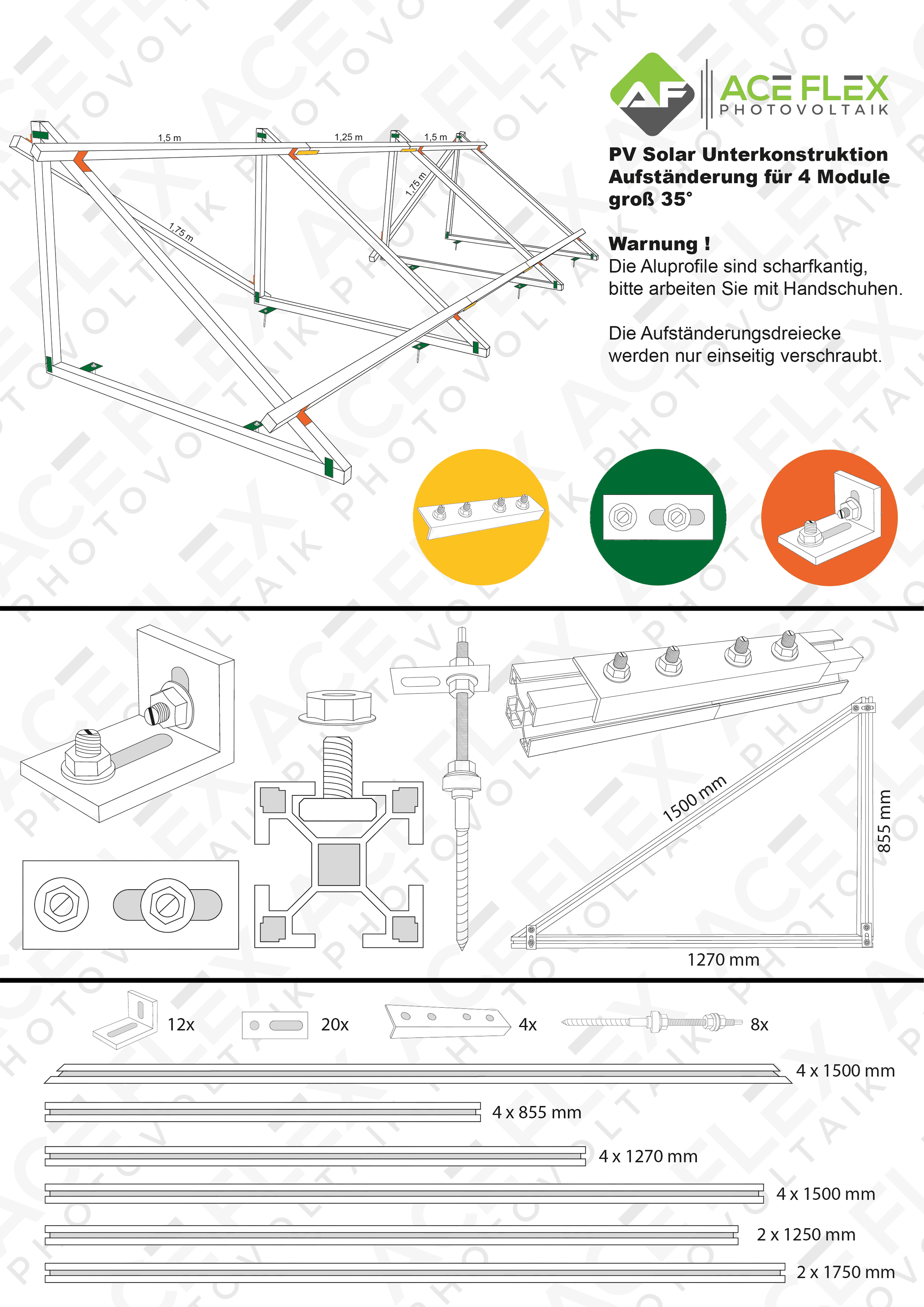 – 4 Stück Aufständerungsdreiecke 35 Grad inkl. Verschraubung