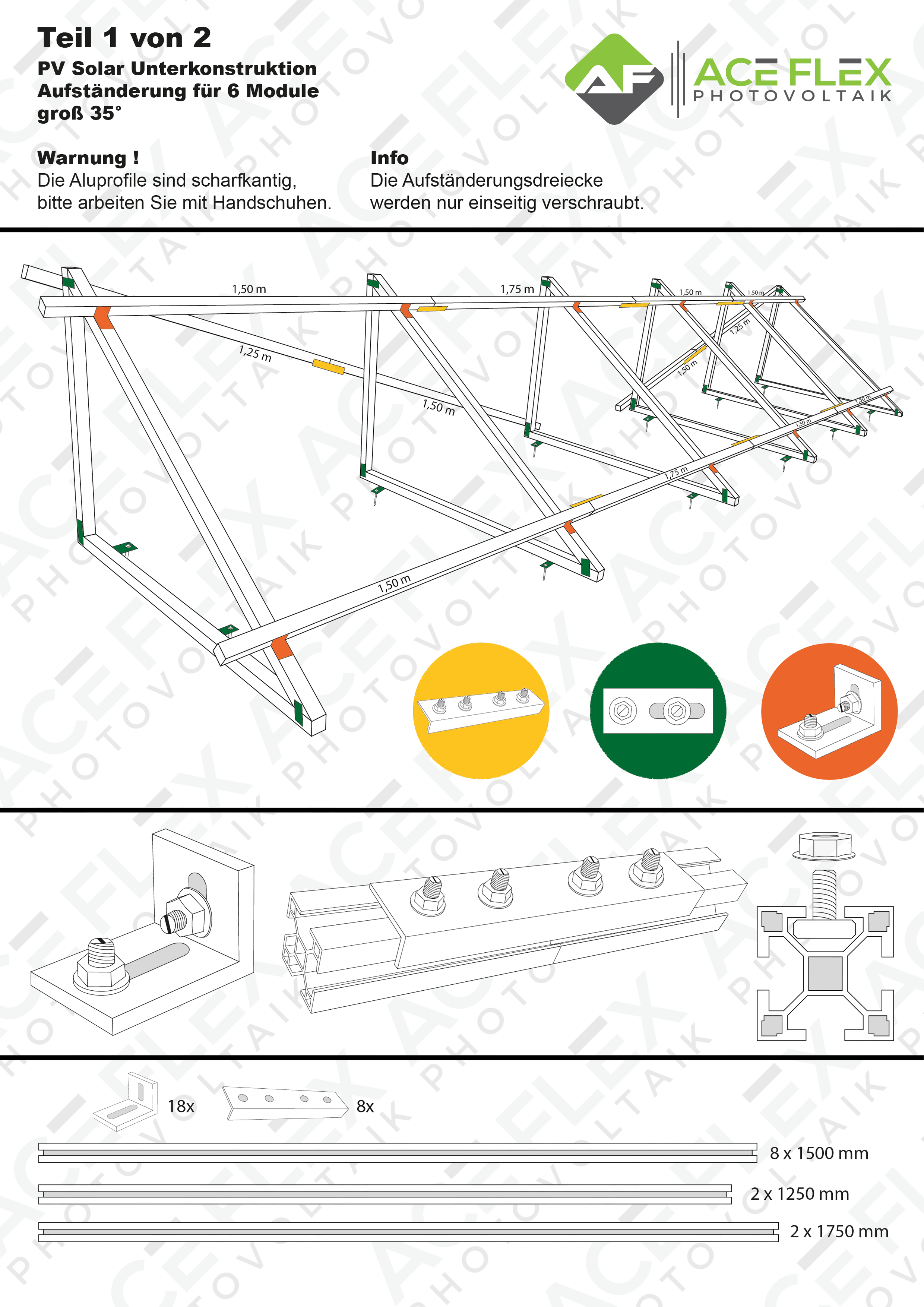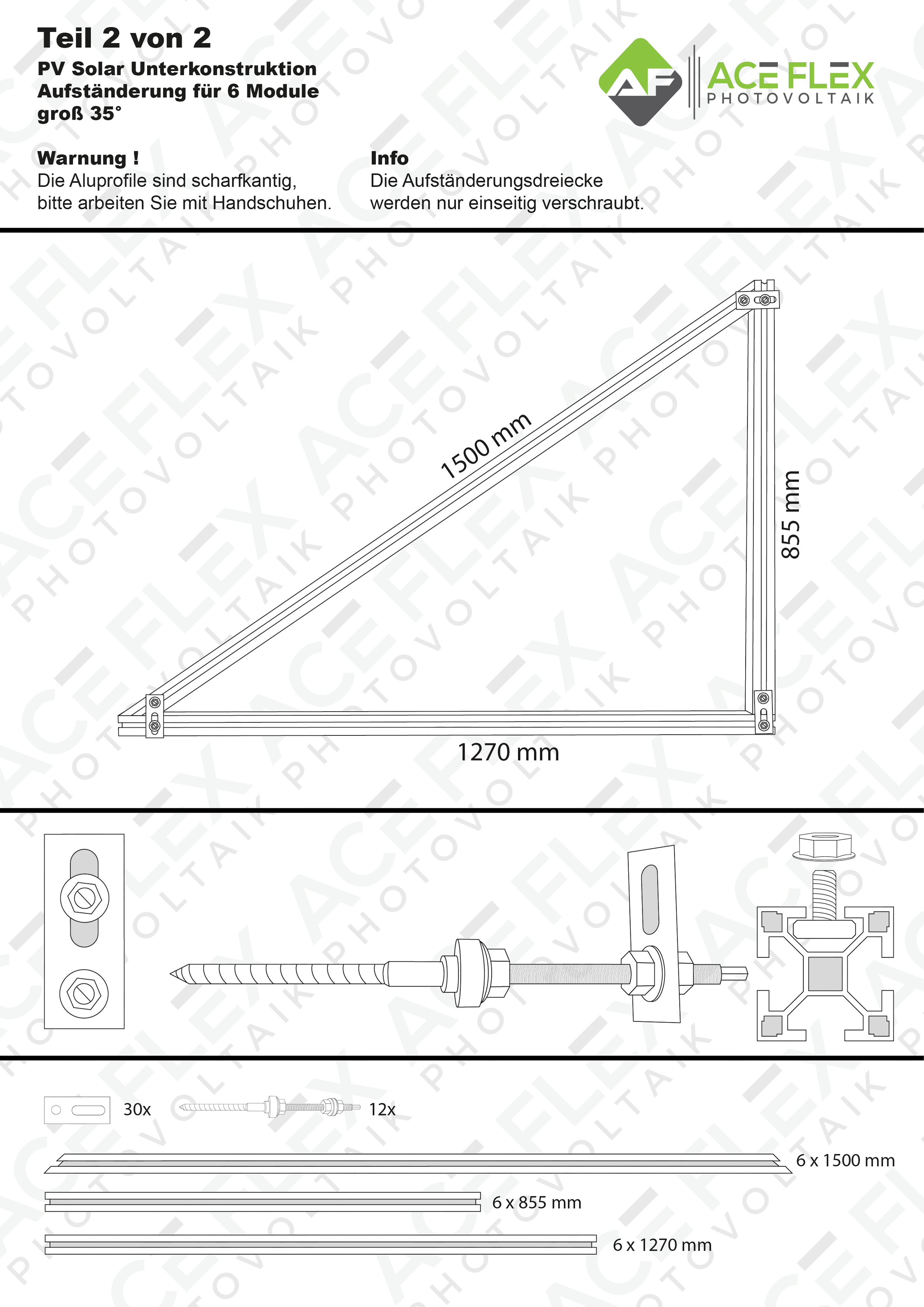 – 6 Stück Aufständerungsdreiecke 35 Grad inkl. Verschraubung